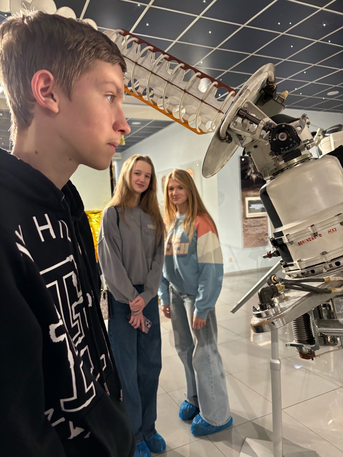 Ученические коллективы 8-В и 8-М классов посетили музей НПО Лавочкина. Ребята узнали много нового об истории самоолётостроения и ракетостроения, о покорении поверхностей Луны, Верены и Марса, о космических путешествиях и об их условиях