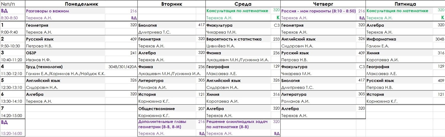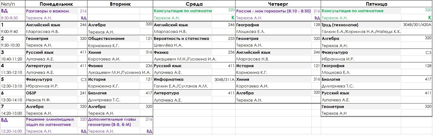 Расписание 8-м класса, в том числе занятий внеурочной деятельности с 02.02.2026