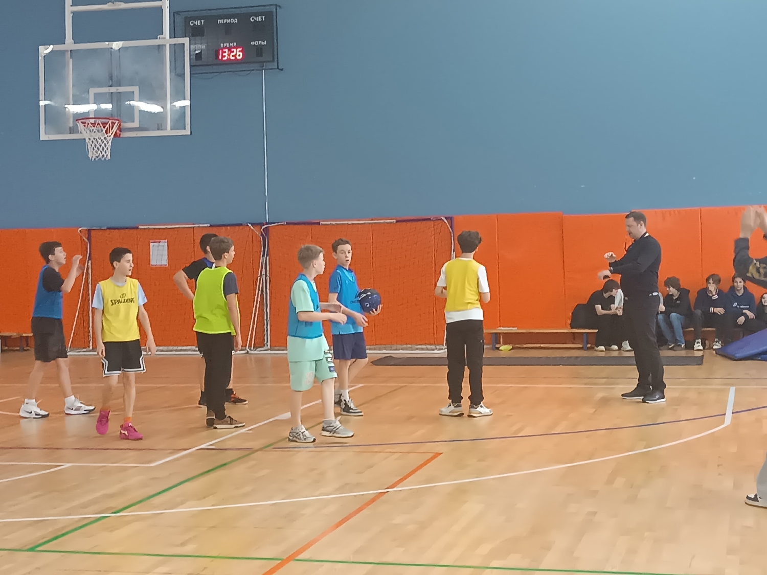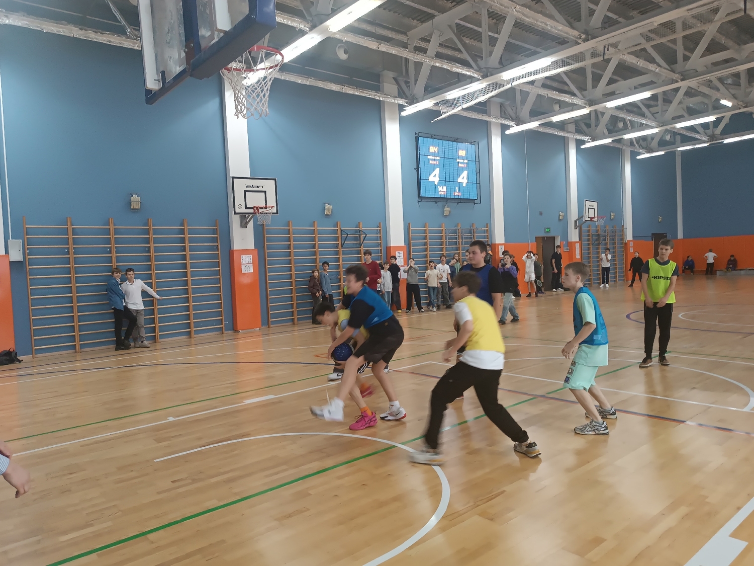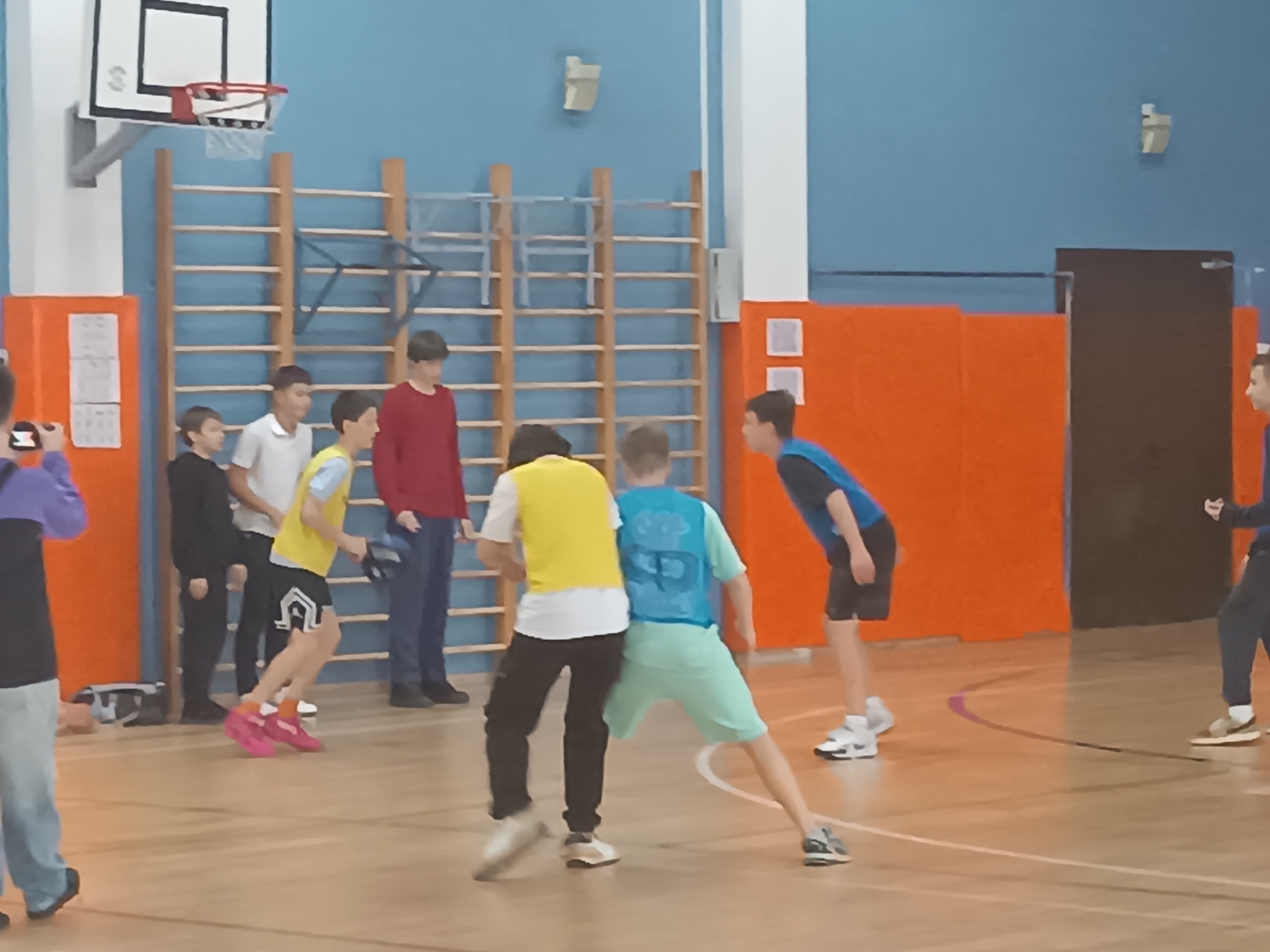 В рамках школьной спартакиады между командами 8-В и 8-М классов прошла игра по баскетболу.